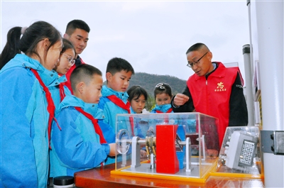 11月20日,在黟县宏村学校中心广场上,学生在认真聆听科普志愿者讲解科普展品及科学原理。当日,安徽科技馆科普大篷车驶进黟县宏村学校,通过零距离互动、沉浸式体验,为学生“种”下科学梦。