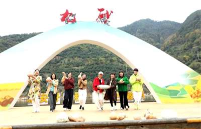 11月21日,歙县深渡镇九砂村,游客打卡新安江山水风光,用相机记录和美乡村新景,感受乡村的宁静和美好。 吴建平/摄