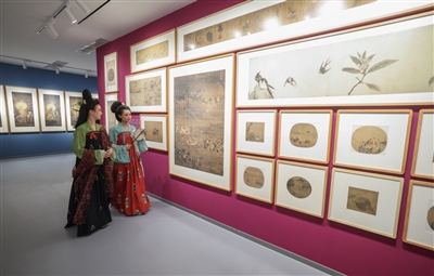 11月25日,身着传统服饰的观众在“中国历代绘画大系”典藏馆内参观。