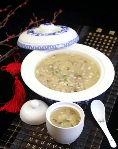 “中河汤”传入祁门后,祁门人加入了冬笋、香菇等山珍食材,又有一些文人骚客植入徽州和合文化元素,改“河”为“和”,“中和汤”便流传至今,也在徽菜的七碗八碟、“重色好油”中脱颖而出,成了汤羹类的“头牌”菜肴。