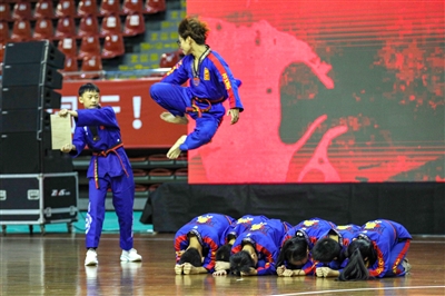 少年跆拳道表演刚劲有力 樊成柱/摄
