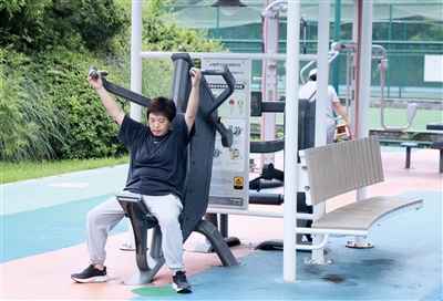 在健身器材上舒展一下筋骨 冯溪孜/摄