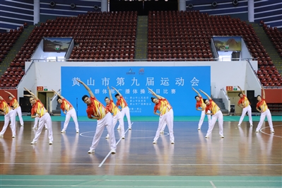 8月13日,市九运会群体部广播体操项目比赛在市体育馆拉开战幕。来自市直机关、黄山风景区、歙县、休宁县、祁门县的五支代表队伍参加比赛。