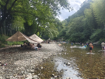 碧水潺潺,洪星乡的溪流山涧迎来了避暑人潮。“这一段时间,只要不下雨,每天都有好几百人来到我们这游玩,这些游客大多都是外地的。我们为了让大家有更好的游玩体验,每天安排工作人员帮忙指挥交通,提醒游客预防溺水、爱护环境等。”杨家墩村党支部书记、村委会主任吴富光介绍道。