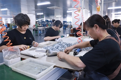8月14日上午,祁门经开区安徽威格仕五金制品有限公司生产车间一派繁忙而有序的生产景象。该公司是一家研发、生产、销售家装门窗五金产品的综合性企业,今年4月正式投产,截至7月底,产值超1600万元,预计全年产值突破3000万元。 张妍 冯溪孜/摄