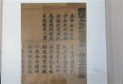 安徽徽州历史博物馆收藏的近代《国民革命军新编第四军第二支队司令部布告》是国民革命军新编第四军在安徽歙县开展革命工作较为重要的实物依据。