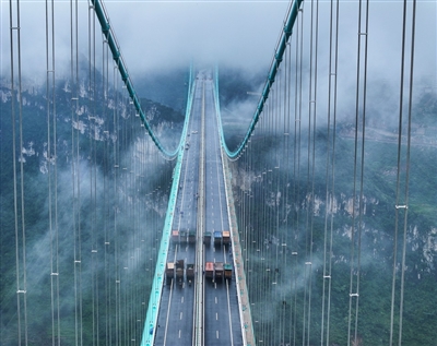 8月21日,在建世界第一高桥——贵州花江峡谷大桥正式启动荷载试验。2022年开工建设的花江峡谷大桥,跨越被誉为“地球裂缝”的花江大峡谷,是贵州省六枝至安龙高速公路的控制性工程。大桥为钢桁梁悬索桥,全长2890米,其中主桥跨径1420米,桥面至水面高度625米。