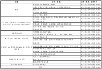在此期间,如果您有资金使用、贷款或信用卡还款等需要,请您提前做好资金安排或还款准备。如有疑问或紧急需求请致电40088-96588(安徽省内直拨96588)咨询。给您带来的不便,敬请谅解。
