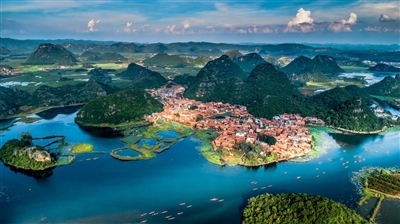 薄雾轻笼普者黑,孤峰倒映碧水中。八月,这片因电视剧《三生三世十里桃花》取景而声名远播的国家湿地公园,湖光山色与喀斯特地貌交织,宛如神仙秘境。