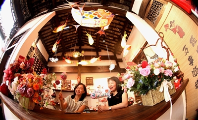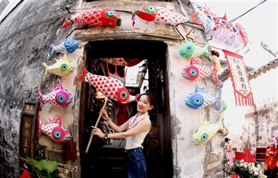 “鱼你有约”鱼灯馆位于徽州古城徽城镇斗山社区,领创人潘敏既是微博达人(歙县小潘潘),也是瞻淇鱼灯的非遗技艺传承人。鱼灯馆没有华丽的装饰,只有大众喜爱的鱼灯,在这里不仅能“看灯”,还能亲手“做灯”。 吴建平/摄