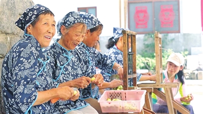 8月26日,在歙县杞梓里镇金竹村,村民正在制作“徽州金丝琥珀蜜枣”。