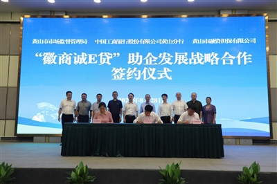 8月28日上午,黄山市实施“徽商诚E贷”助企发展战略合作签约仪式在屯溪区举行。省市场监管局、工行安徽省分行、黄山市人民政府相关领导,中国人民银行黄山市分行、国家金融监管总局黄山监管分局、黄山市市场监管局、工行黄山市分行、黄山产投集团领导及有关人员,各区县市场监管局、工行有关人员,以及企业代表近70人共同出席签约仪式。