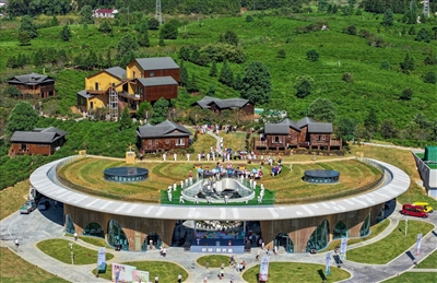 据悉,作为此次活动的核心地标和祁门县推进“茶文旅”深度融合的重要载体,“祁驿·群芳最”项目总建筑面积3446.75平方米,内含游客服务中心、中式茶饮区、祁红种植科普馆等分区,集游客接待、非遗体验与文化展示功能于一体。项目以“开盖有益”为设计理念,采用圆形半埋地景建筑造型,寓意打开一罐珍藏红茶,开启一段与祁门红茶深度互动的美妙旅程。