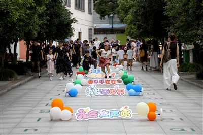 "> ?屯溪现代实验学校新生参加开学游园趣味活动。
