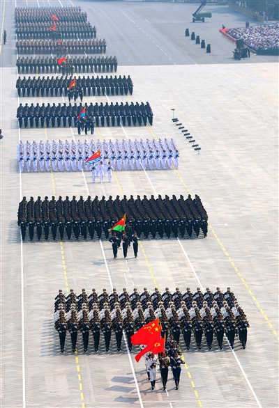 徒步方队接受检阅