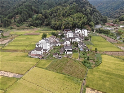 "> ▲金秋九月,休宁县板桥乡呈村宛如一幅绚丽的画卷,美不胜收。金黄的稻田在阳光照耀下,恰似一片金色的海洋。风吹麦浪,波涛翻滚,处处洋溢着丰收的喜悦。 汪建国/摄