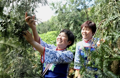 9月14日,歙县溪头镇汪满田村宇艳榧业家庭农场300多亩香榧进入盛产期,村民正在采摘香榧。据了解,汪满田宇艳榧业家庭农场今年香榧预计可采收鲜果5万公斤,比去年增产20%。当前,全县有2000亩香榧进入盛产期,香榧生产获丰收。 吴建平/摄