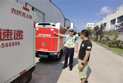 为了规范物流无人配送车的行驶秩序,市交管支队高新大队还为无人配送车规划了专门的行驶路线和时间,并根据城区道路的交通流量特点,合理安排无人配送车的运行线路和时段,避开交通高峰期和人流密集区域,减少与其他车辆和行人的冲突。同时,对于物流无人配送车可能出现的故障,实施警企联动,尤其是针对节假日暴增的车流,高新交管部门未雨绸缪,确保无人配送车主动避让核心区域。今年暑期运输高峰前夕,市交管支队高新大队则提前启动应急线路管制预案,保障了辖区主干道车流通行效率。“在物流无人配送车运行中,我们将辖区细化为6块责任田,对无人配送车路线实施动态监管,对于长期拥堵点、施工路段等风险区域,及时标注,系统自动降速绕行,路面警力则依托实时定位系统,确保一旦报警,5分钟到达现场处置。目前,该动态监管机制运行以来,未发生一起因无人配送车故障导致的长时间拥堵。”严卫说。