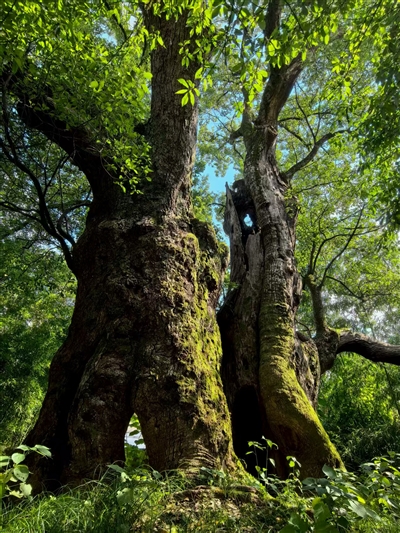 船家经此会停桨小憩,路人遇暑会倚树纳凉,而古樟最沉默也最有力的功绩,藏在看不见的地下——它的根系如一张巨网,深深扎进渐江岸边的泥土,千百年来紧紧攥住堤岸。每逢汛期,江水猛涨、浪头拍岸,多少堤土被冲垮,可古樟所在之处,却总能稳住阵脚。村民们说:“有这树在,堤岸就塌不了。”久而久之,这棵“年老干空”却显现顽强生命力的古樟,成了全村人心中的“堤岸守护神”。