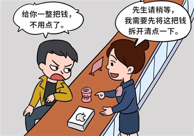 大额交易应尽量选择非现金支付方式。如收取整捆、整把的现金,应拆开逐张查验。