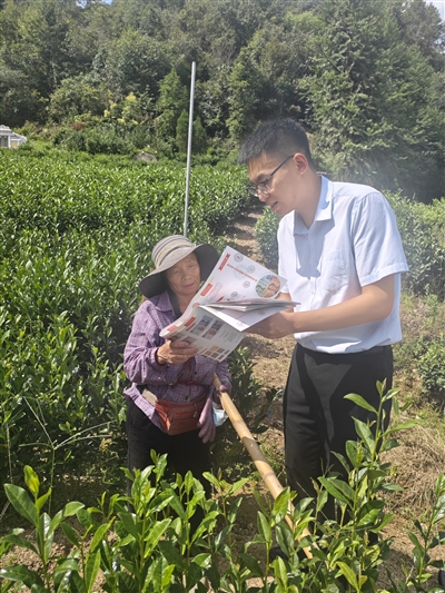 为有效提升茶农对假币的识别能力和防范意识,保护消费者合法权益,近期一大早,建行黄山市分行的工作人员带着反假货币宣传资料深入茶山茶园,开展了一场接地气、解民忧的反假货币宣传活动,为茶农们送上了实用的“金融安全课”。
