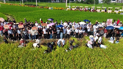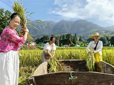 "> 9月23日上午,黄山区乌石镇长芦村水稻种植基地人声鼎沸,市民游客欢聚于此,参与农事体验,感受收获的踏实与快乐。夏 晖/摄