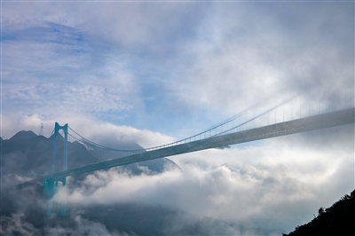 9月28日,世界第一高桥——贵州花江峡谷大桥建成通车。花江峡谷大桥是贵州六枝至安龙高速公路的控制性工程,大桥全长2890米,主跨径1420米,是目前世界山区峡谷第一大跨度钢桁梁悬索桥;其桥面距水面垂直高度625米,是新的世界第一高桥。 新华社记者 欧东衢/摄