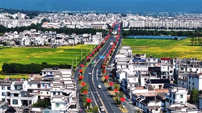 为营造欢乐、祥和、喜庆的节日氛围,日前,黟县在环城路等重要进出城通道两侧悬挂国旗400余面,以最美的街景向国庆节献上诚挚的礼赞。