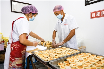 连日来,徽州区潜口镇澄塘村吴家糕点坊,老师傅们遵循着祖辈传下来的手艺,用传统纯手工的方式,制作出皮酥馅饱、香飘四溢的芝麻土月饼,深受市场青睐。预计今年中秋期间,该糕点坊能卖出10多万个土月饼,销售额近30万元。