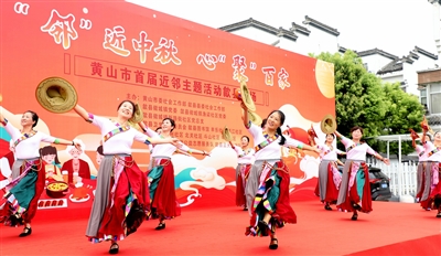 9月30日,黄山市首届近邻主题活动在歙县徽城镇渔梁社区举办,社区居民欢快的舞蹈营造出浓浓的节日氛围。 吴建平/摄