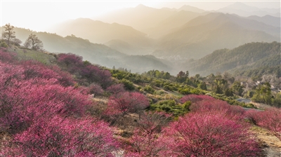 1月18日,歙县霞坑镇石潭村,梅花竞相绽放,暗香浮动,吸引众多游人前来赏花拍照,享受冬日“梅”好时光。 郑 宏/摄