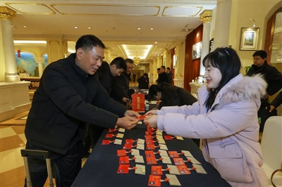 参会代表陆续来到驻地报到,领取代表证件及会议材料。 樊成柱/摄