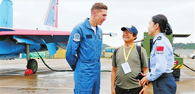 本报讯(记者李东捷)在第十五届中国航展现场,俄罗斯”勇士”飞行表演队队员纳卡兹内向服务保障航展飞机出入境的边检民警给予高度认可和肯定。