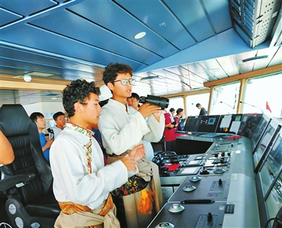 在船长的带领下,同学们参观了甲板工作区、驾驶室等区域,对科考船的先进性能和强大科考能力有了深入了解。随行老师表示,这场特殊的科普研学之旅,不仅开拓了同学们的眼界,也激发了大家对海洋的浓厚兴趣。