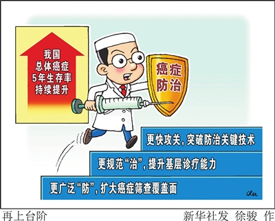 国家癌症中心、中国医学科学院肿瘤医院党委书记张勇表示,《健康中国行动——癌症防治行动实施方案(2023—2030年)》明确提出,到2030年总体癌症5年生存率不低于46.6%。下一步要持续扩大癌症筛查和早诊早治的覆盖面,同时加强防癌科普宣传,进一步提高群众对癌症筛查的接受度和主动性,让筛查成效惠及更多人群。