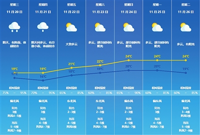 不过,11月22日以后,天况逐渐转好,阳光回归,气温也将有所回升。