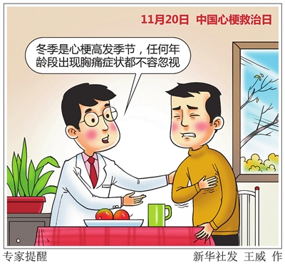 11月20日是中国心梗救治日。医生提醒,冬季是心梗高发季节,任何年龄段出现胸痛症状都不容忽视。 新华社发
