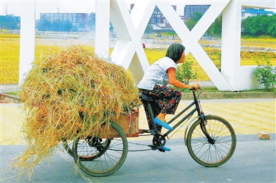 一位村民蹬着人力三轮车,载着稻草,在村道上奋力前行。 拍客:林集源 地点:斗门区新村村 稿费:30元