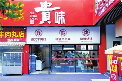 贵味一楼,专攻遵义羊肉粉和贵州特色烙锅。二楼是中央厨房,三楼则是数个包厢。从粉面小吃到硬菜大菜,这里一应俱全,所有食材均从贵州运来,地道风味包管你吃一次就爱上贵州口味!