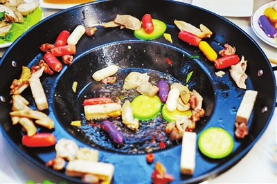 可以让多余的油脂自动流向锅边,贵州人有自己的“特色铁板烧烤肉”。