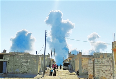11月20日,叙利亚巴尔米拉市遭空袭后升起烟雾。 新华社发