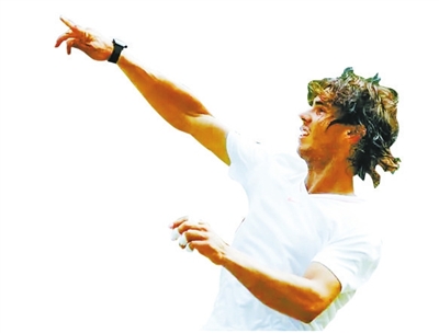 ●2010年7月4日,纳达尔庆祝胜利。当日,西班牙选手纳达尔在2010年温布尔登网球公开赛男单决赛中,以3:0击败捷克选手伯蒂奇,第二次夺得温网冠军。