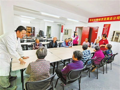 医生向居民讲解“三高”疾病的成因与预防措施。