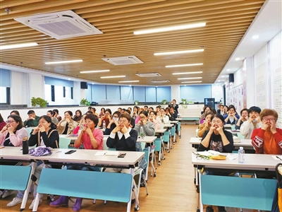 本次活动邀请了具备丰富育婴知识和小儿推拿经验的黎老师担任授课老师,共吸引57名“宝妈”前来听讲。黎老师首先介绍了小儿推拿的职业前景和就业方向,然后详细讲解小儿推拿的常用手法、常用取穴法及功效等理论知识,并采取实操与理论相结合的教学形式,手把手指导学员练习常用的小儿推拿手法,重点针对小儿感冒咳嗽、发热腹泻等常见病的保健按摩方法进行解析和示范。