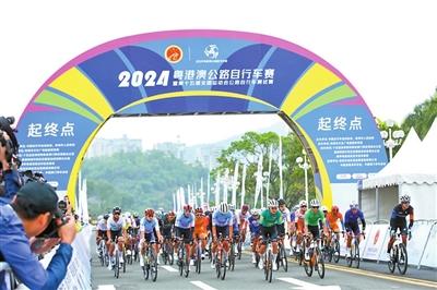 本报讯(记者张映竹)骑行粤港澳,追风山海间!11月24日上午9时,2024粤港澳公路自行车赛暨第十五届全国运动会公路自行车测试赛在珠海开赛!5个多小时的激烈角逐,选手们领略了港珠澳大桥的壮观,香港大屿山的秀美,澳门城市的多彩,横琴粤澳深度合作区的澎湃活力,沉浸式感受三地魅力。