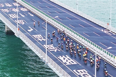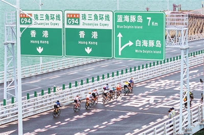 参赛选手从港珠澳大桥准备进入香港赛段。本报记者 李建束 摄