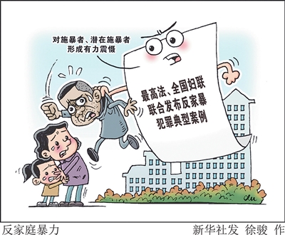 新华社北京11月25日电 最高人民法院与中华全国妇女联合会25日联合发布5件反家庭暴力犯罪典型案例,进一步提高全社会对反家庭暴力的关注和重视,切实维护妇女、儿童等家庭暴力受害者的合法权益,对施暴者、潜在施暴者形成有力震慑。