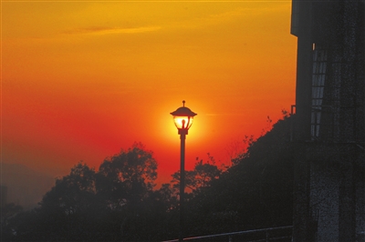 夕阳下路灯亮起,光影交织,勾勒出黄昏时分的静谧与浪漫。 拍客:邱梓豪 地点:板障山山顶 稿费:50元