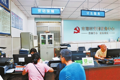 斗门区井岸镇南潮村村民在该村党群服务中心办理社保业务。