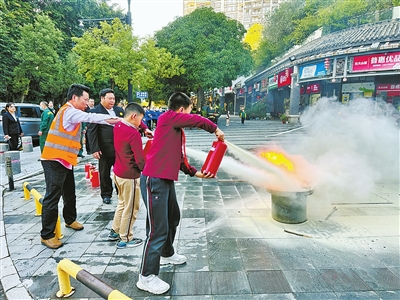 青少年参与消防演练活动。本报记者 赵梓 通讯员 香宣 摄